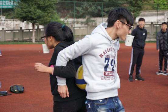 趣味运动会中的每一个活动都是由干事之间的密切配合才得以完成,由全体干事参与其中,展现小组中每一个成员的重要性,在为数不多的重庆大太阳的日子,操场上充满了笑声和奔跑的脚步声。为了能使大家变得更有积极性和挑战性,又有准备的很多零食,毕竟吃是一件令很多人激动的事情,使整个活动活跃到了高潮。
