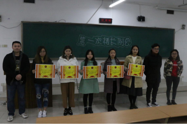 出席颁奖仪式的有大自委指导老师陈剩勇老师,大自委副主席贺成鹏,及公寓社区中心各个部长与公寓所有楼长。陈剩勇老师首先就上学期公寓的相关工作做出了总结,并对此学期的工作进行了对应安排。而后大自委监督检查部部长李洁于上学期安全员相关工作进行了总结,并公布了相关数据以及优秀安全员名单。贺成鹏主席为优秀安全员颁发奖状,由相应楼长代领,最后和陈剩勇老师一起拍照留念。