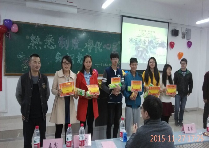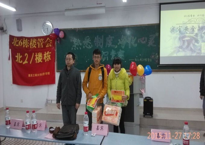 为全面普及安全知识,强化校园安全文化教育,营造校园安全文化氛围,建设和谐、平安楼栋。在北6楼管会与北21楼管会的共同努力下,根据2015--2016学年公寓文化活动主题开展了“熟悉制度、净化心灵之公寓卫生安全知识竞赛”,活动于11月27日在7教405成功举办。学生处bet365直播科科长冯湛老师、北6楼管会主任郝颖老师、北21楼管会主任喻智成老师出席了本次比赛并担任比赛评委。并邀请了北6党服站长石运婷、北21党服站长李翔,大自委宣传策划部干部以及其他楼栋干部作为嘉宾。