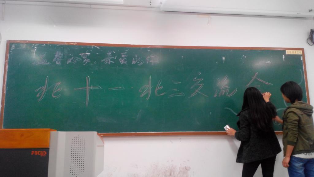 2014年十一月二十八日晚上七点,重庆工商大学北十一与北三交流会在主校区博智楼311教室顺利举行.北三两位楼长以及北十一楼长何莹,副楼长李俊巧、王希,以及北十一五位层长参加了此次交流会。