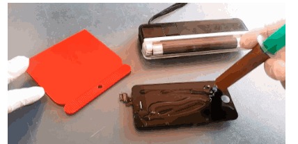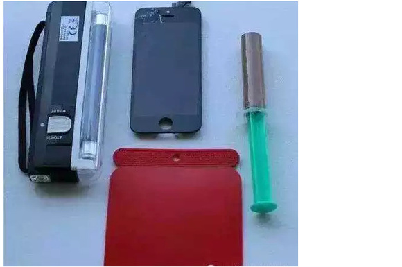是不是很神奇!其实方法很简单,只需一瓶紫外线玻璃胶水,一个紫外线灯,一个刮板,就可以自助修复屏幕啦!